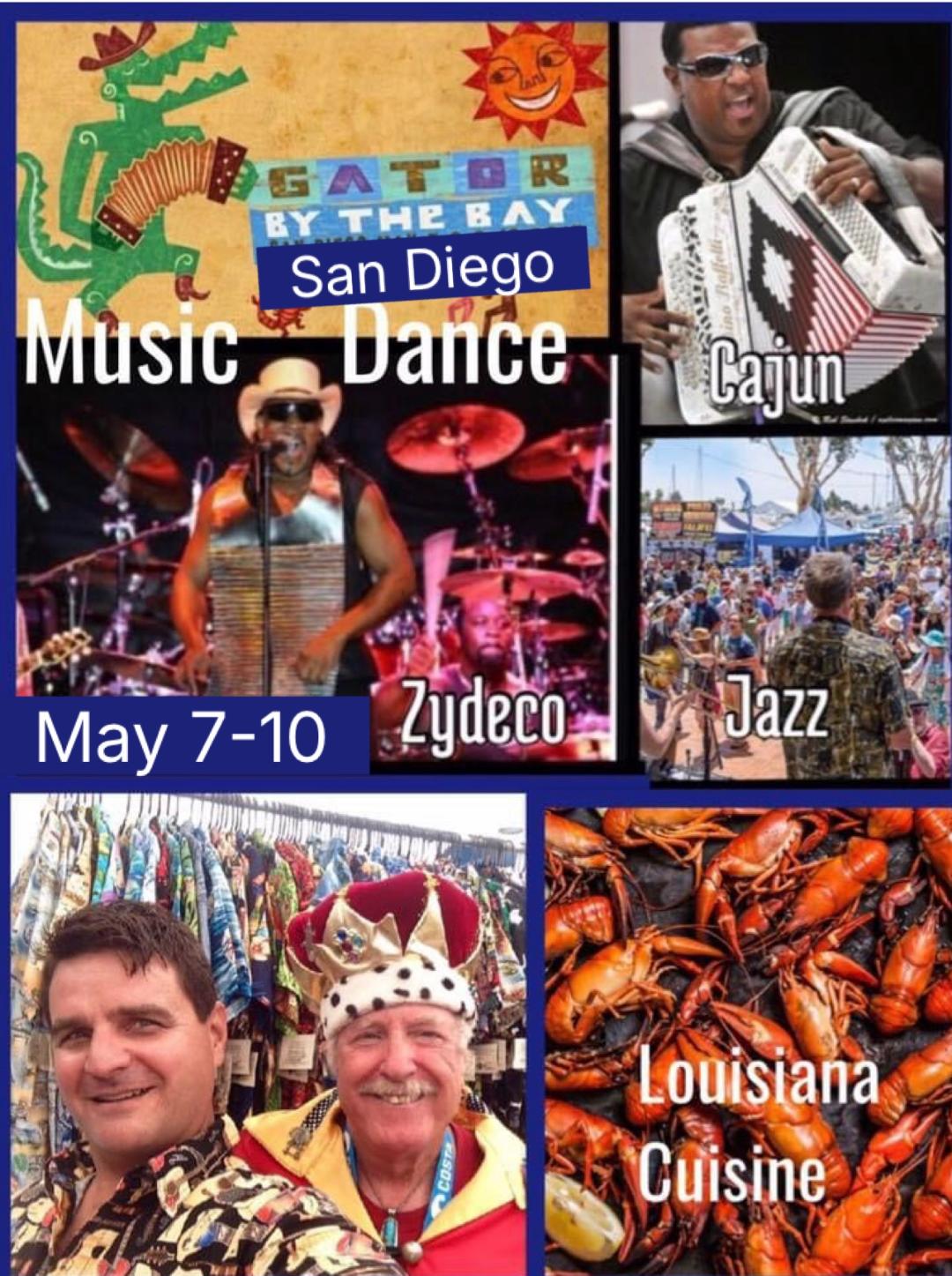 This year's Gator by the Bay Festival is happening May 7th-10 in beautiful San Diego. There will be non-stop performances of over 100 Blues, Cajun, ,Zydeco, Folk, and Jazz Bands on 7 stages. This event celebrates the incredible diversity of Louisiana Culture through Music πΆ , Food π₯ and Dance π. Since 2001 this Festival has grown into the largest Mardi Gras themed event outside of New Orleans.