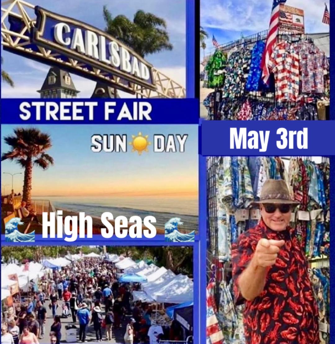 High Seas Hawaiian Shirts will be at the Carlsbad Street Faire Sunday, May 3rd, 2026!! (3/19/2026)